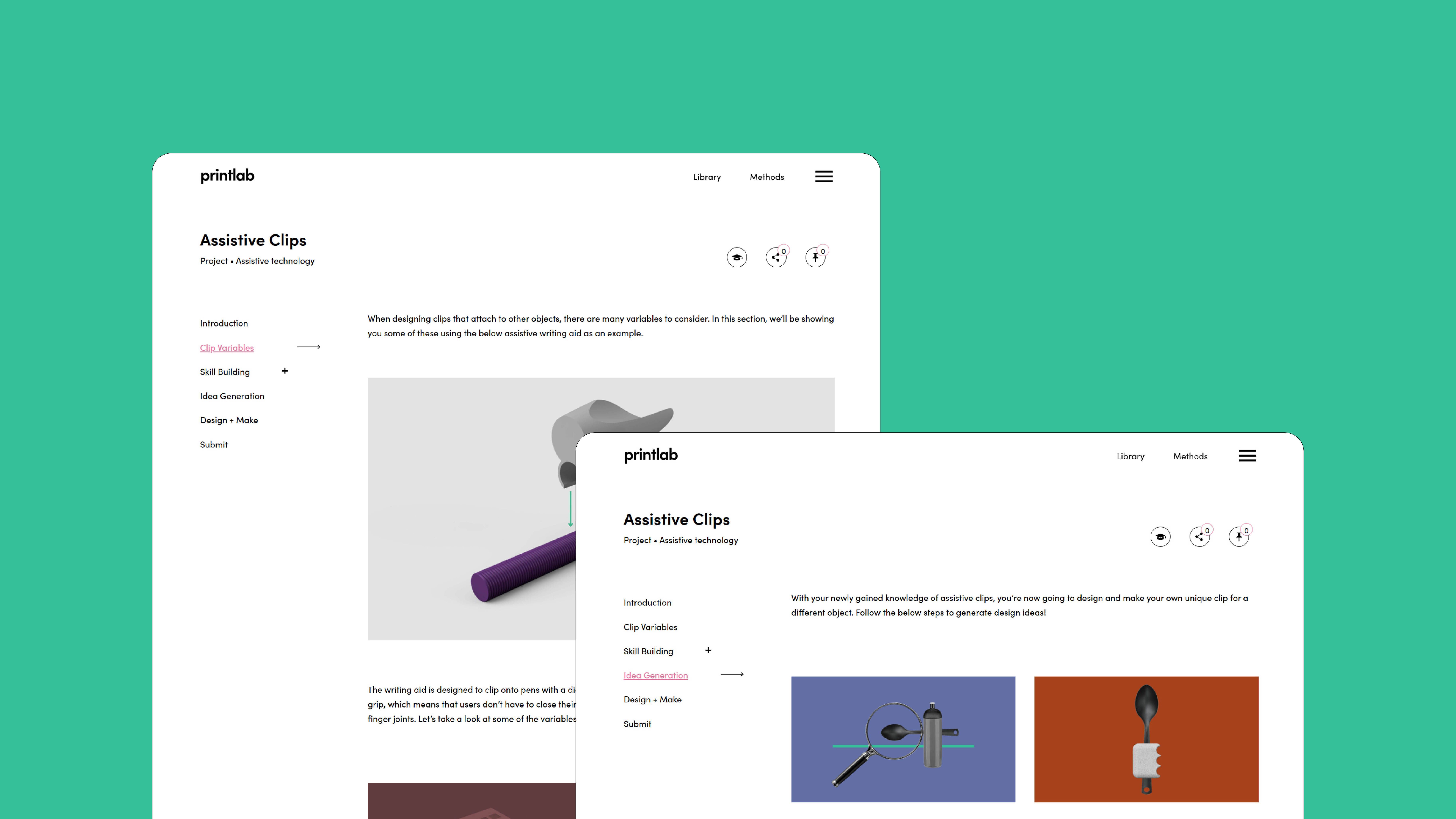 En este proyecto, diseñarás pinzas de ayuda que se adhieren a los objetos para hacerlos más accesibles a las personas con artritis o dificultades de agarre. El proceso consiste en explorar un ejemplo de ayuda para escribir, antes de utilizar los conocimientos adquiridos para diseñar tu propia pinza de ayuda. ¡Mira los detalles del proyecto a continuación y comienza una prueba gratuita de PrintLab hoy!